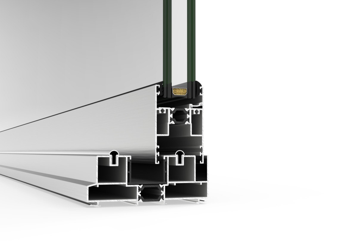 Schüco ASE 60.HI and ASE 80.HI. 60mm and 80mm basic depths. Passivhaus‑Institute certified (80mm variant). Vent travel up to 18 metres on TipTronic motorised version. RC2 burglar resistance concealed within frame — invisible from outside. Level‑threshold option for wheelchair access. Compatible with 24–50mm insulated glazing units. Continuous EPDM weather seal. Stainless steel tandem roller system.